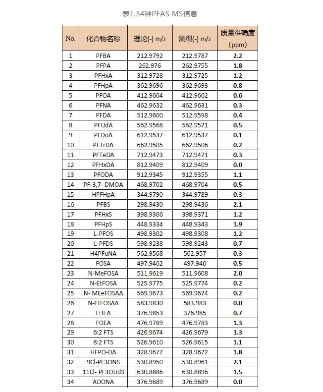 34種PFAS靶向篩查及高分辨質(zhì)譜庫