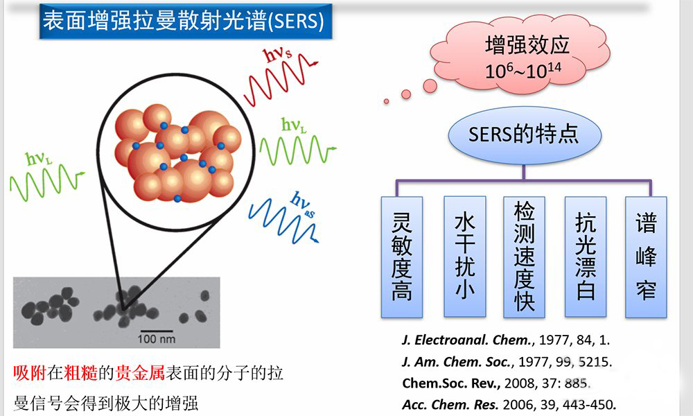 隨后出現的就是表面增強拉曼散射(SERS)技術,這讓拉曼逆襲成為高靈敏度儀器。