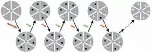 當兩個發光團太接近的時候,傳統分辨率不能分辨。莊小威的想法就是,如果能夠用兩種顏色的光,一束(633 nm)管死,通過光漂白讓大部分粒子激發過度到達暗態(死了),另一束(532 nm)管活,通過激活,就像靈芝草似的,讓極個別死去的粒子再活過來。由于活著的是極少數。這樣,亮起來粒子周邊都是不發光的,就可以很容易地把它定位出來,再把它激發、打死,救活另外一些,如此往復。