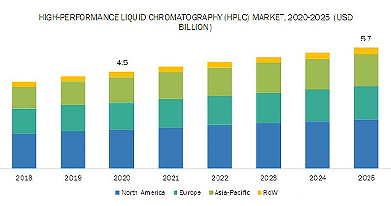 2020年全球HPLC市場為45億美元,到2025年將達57億美元,在預測期內以4.6%的復合年增長率增長。