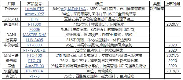 主流吹掃捕集/動(dòng)態(tài)頂空系統(tǒng)匯總(供參考不分先后)