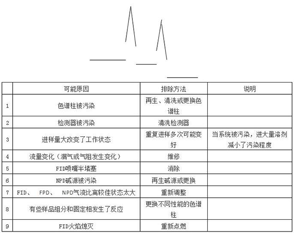 2、再此討論的基線(色譜峰)異變,是指按已知色譜分析方法操作時,得到的色譜圖與沒有問題的已知色譜圖比較,出現(xiàn)某些組分峰畸變、“鬼峰”或基線不正常。或者說,對于一個正在使用的色譜分析方法,由于不要求或出于無奈時,有些峰分不開、拖尾或峰型不對稱等并不影響方法的實(shí)施,就不屬于儀器有故障,否則應(yīng)重新修改、審定原來的色譜分析方法。