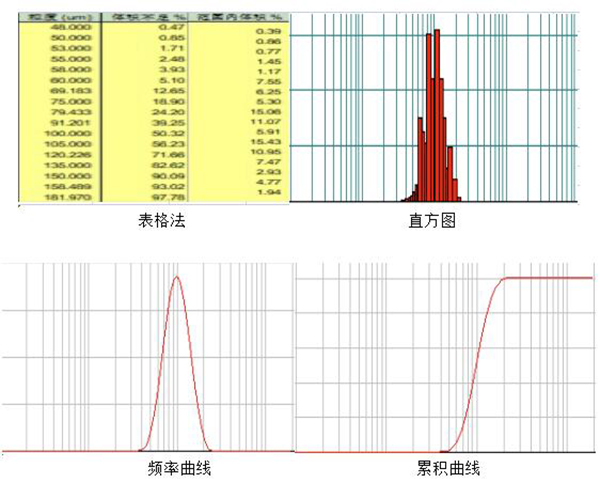 用頻率分布曲線和累積分布曲線等方式表示粒度分布的方法。