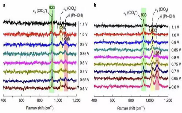 單晶電表面ORR過程的原位拉曼光譜圖