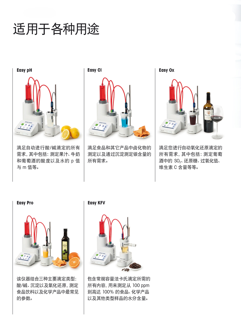 梅特勒-托利多易滴系列滴定儀標配了常規滴定分析的全部配件。 由于采用了類似智能手機的 iTitrate用戶界面和 iTitrate 智能化功能,使儀器的操作更加簡單、直觀。